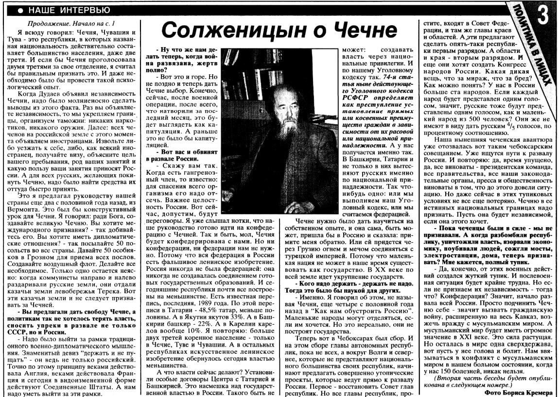 Выступления Солженицына о Чечне (1995-2003)